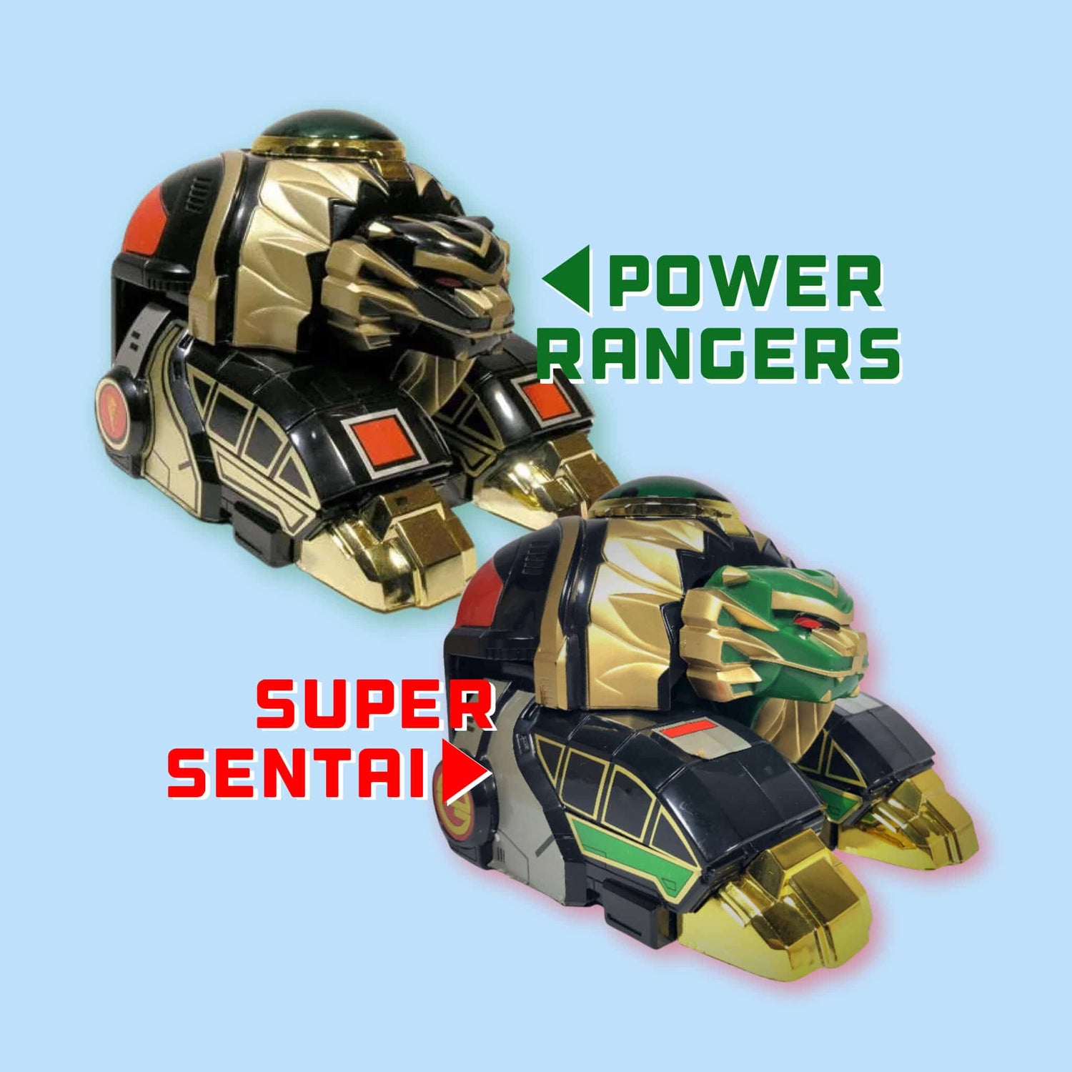 パワーレンジャーとスーパー戦隊に登場する様々なアイテムなど、一見同じ様にみえるにもかかわらず、例えば、ライオンサンダーゾードの玩具の緑色の部分は黒に再着色され、ホワイトショーグンゾードはピンクショーグンゾードに再着色されました。